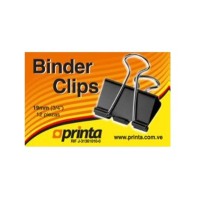 Binder clip 19mmCod. Prod.: PR-O-0005 Binder clip 19 mm (3/4). Color negro. Cajas de 12 piezas Unid. Medida: 12 cajas